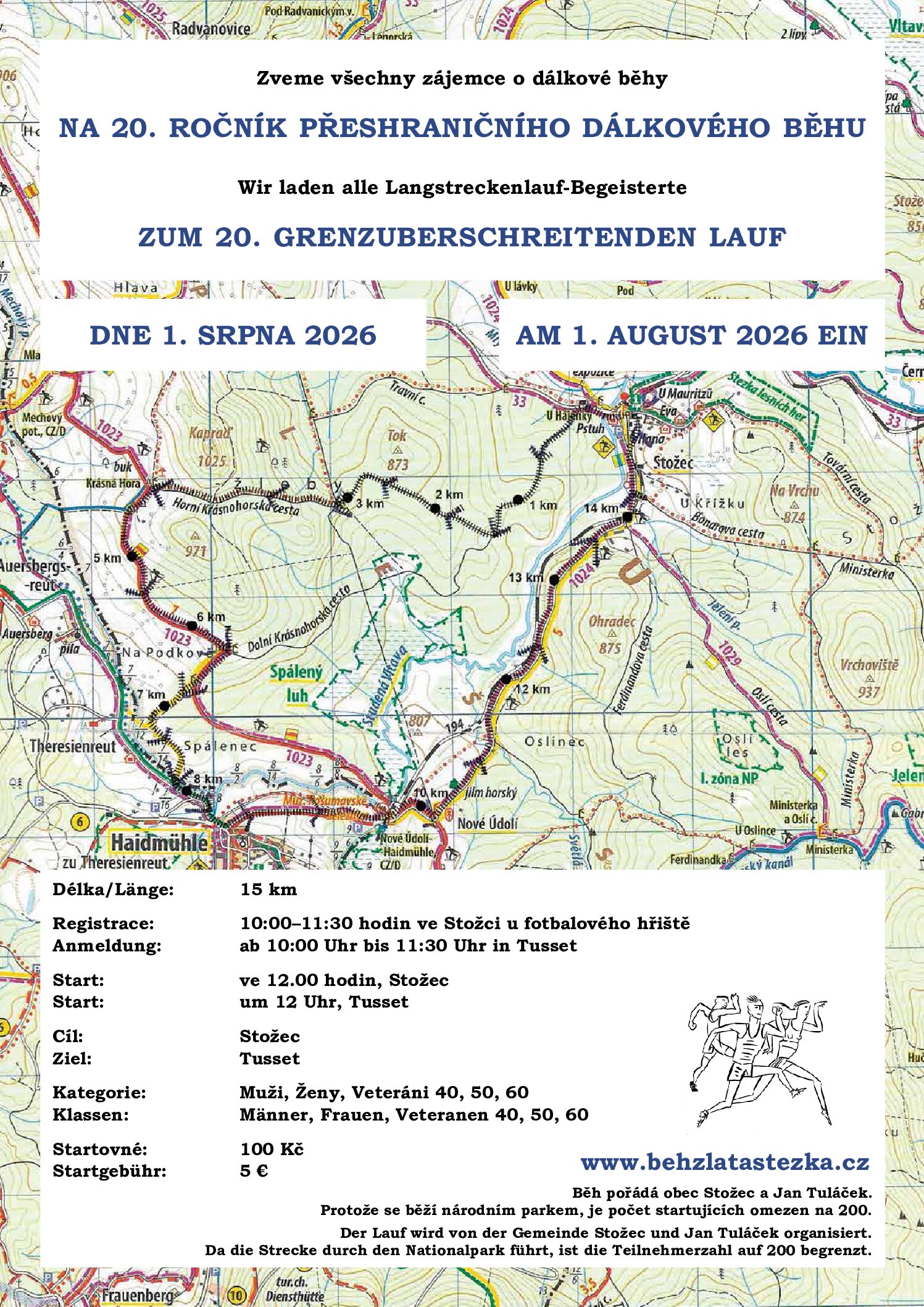 Start: ve 12 hod. v obci Stožec (800 m. n. m.), cíl tamtéž